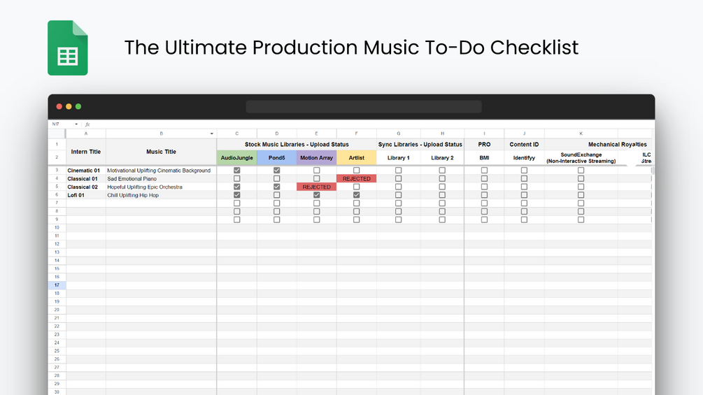 You'll get: The Ultimate Production Music To-Do Checklist Template for Google Sheets AND Notion.